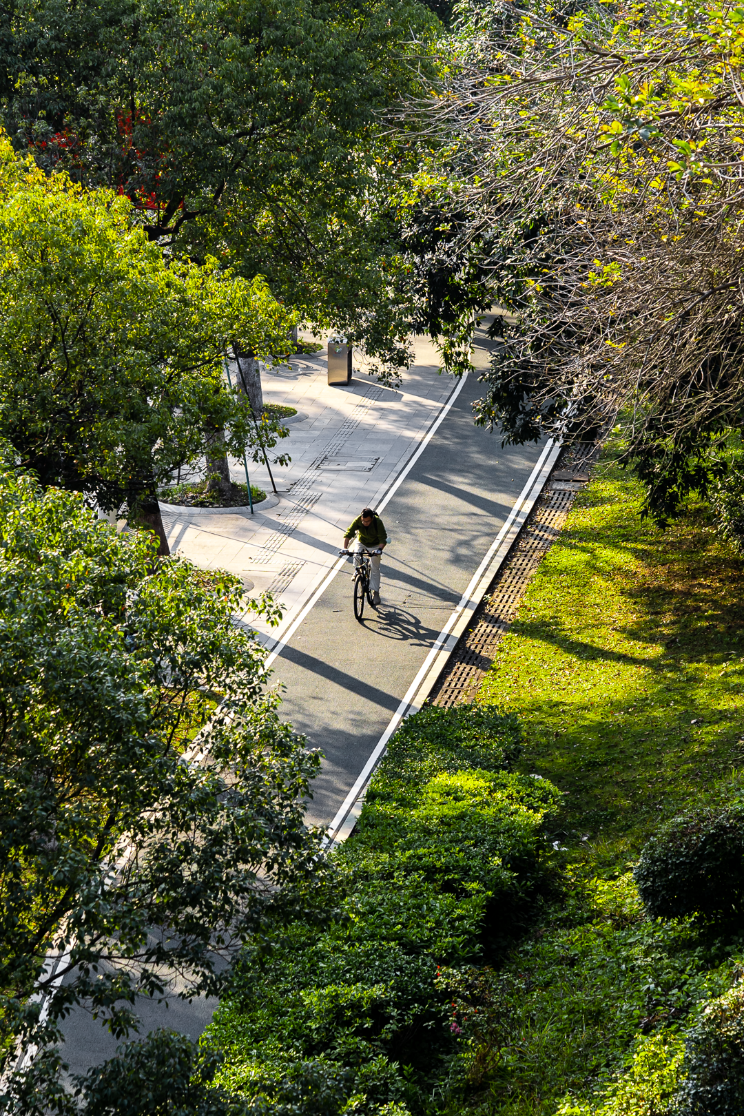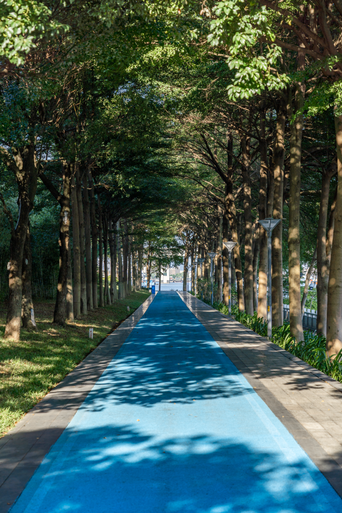 绿道上,两侧树木郁郁葱葱
