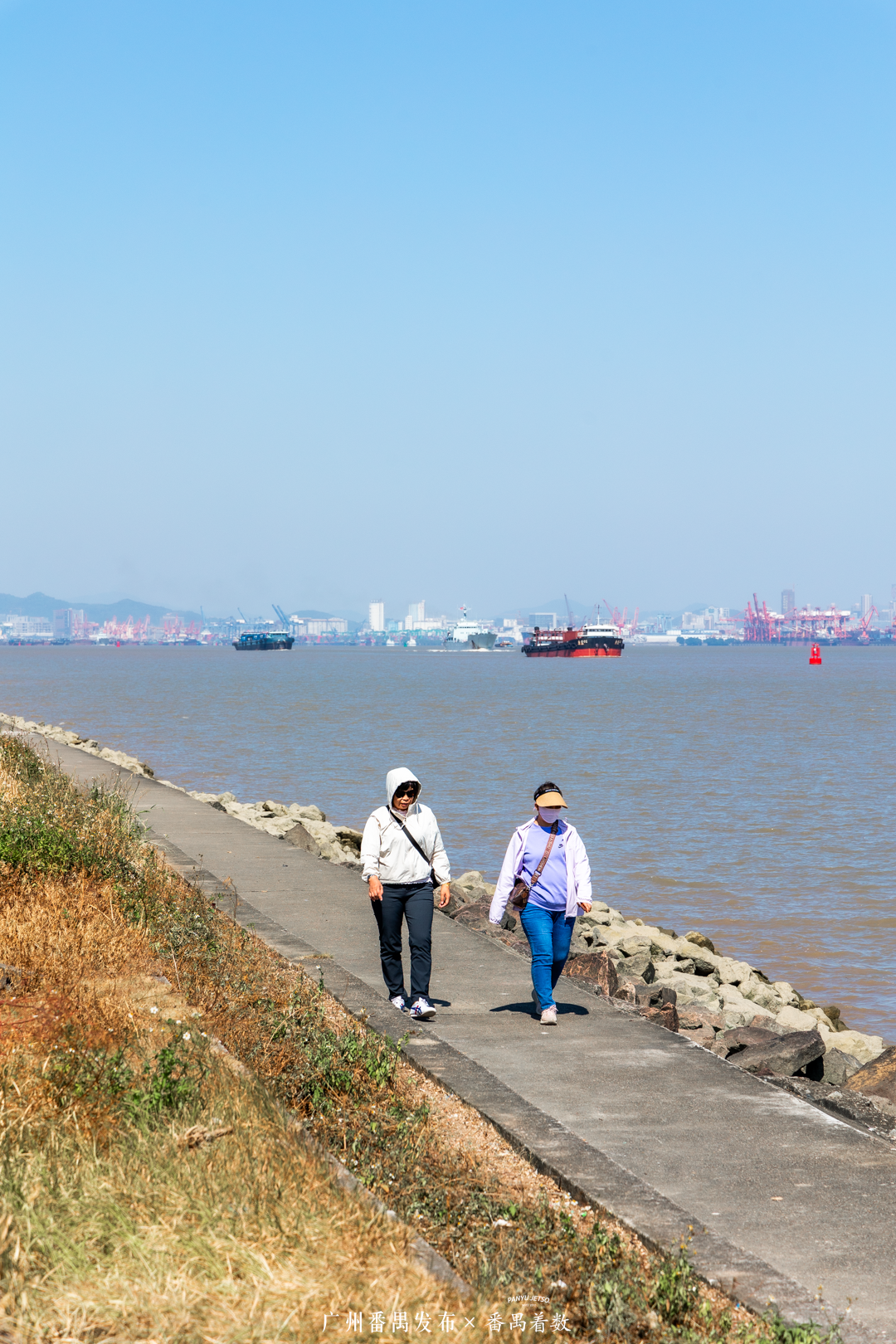 沿着海边堤围漫步
